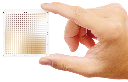 为了让一个一个手工制造的半导体气体传感器能够大量生产,当时我们需要去做的一个地方就是成膜工序的彻底改变。那时候我们注意到了制造IC芯片时会用到的厚膜印刷技术,刚开始我们利用这个技术把气敏材料印在边长不到1英寸的正方型电路板上,后来我们慢慢确立了糊化材料的方法和对准位置的技术,在大型电路板上也可以稳定地印刷,现在我们只要进行一次的印刷动作就可以完成700个以上的成膜。